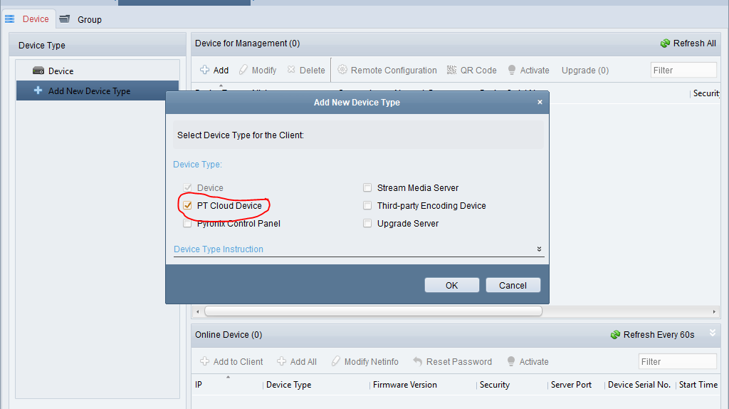 - Click Add New Device Type.
