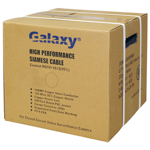 Summary:Galaxy Siamese cable for outdoor use, 500ft, Coaxial RG59/U w/18/2 Power/Video Cable, UL CMR, Black