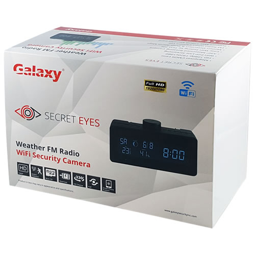 HD 1080P Wi-Fi P2P Weather Radio for Smart Home and business security. First, it can be used as a normal weather station to detect and show inside temperature and humidity, and display time/date/moon phase; Also, with functional FM radio. Second, the device can be easily connected to Wi-Fi and watch live video, or remotely take photo and video by APP in smartphone, Also, it supports P2P function, connected by APP to smartphone for local live video without Wi-Fi. Third, the item also support motion detect alarm function, cycle recording and work when charging.