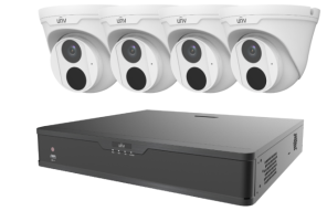 One 4-ch NVR and 4 x 4MP turret cameras with 1 TB hard drive installed