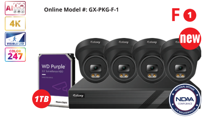 NDAA Galaxy Color-V Full Color 4K AI IP Turret 4CH Kit