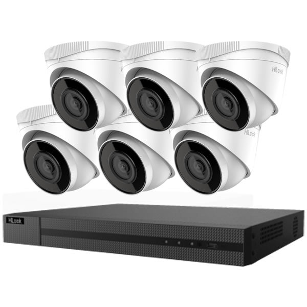 - Six 4MP fixed turret network cameras with efficient H.265 compression technology