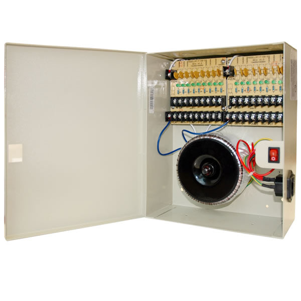 AC 24V 12A 18CH Outputs CCTV Power Supply Box (PTC Fuse) UL Approved
